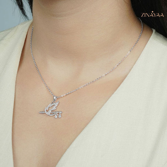 92.5 Sterling Silver Krishna's Flute Pendant with Chain in Rose Gold