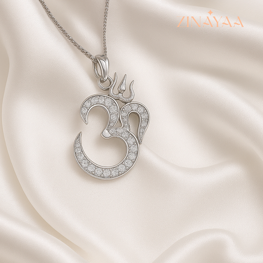 92.5 Sterling Silver Om Trishul Pendant Chain