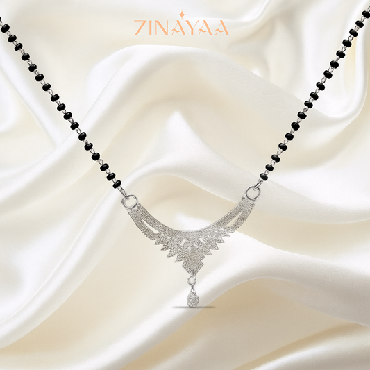 92.5 Sterling Silver Mangalsutra Sparkling Floral Pendant Design