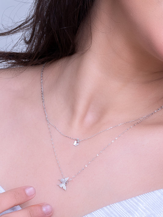 92.5 Sterling Silver Trio Butterfly Necklace
