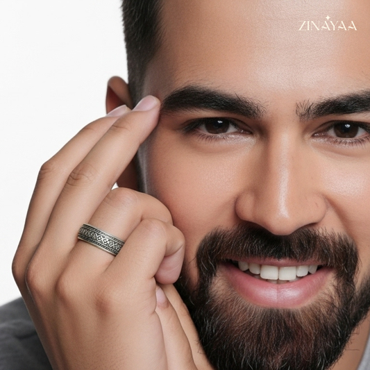 925 Sterling Silver Noir Royale Adjustable Ring for Men