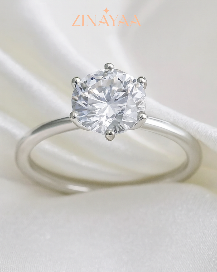 Timeless and radiant, this Classic Round Solitaire Ring is a symbol of elegance and sophistication. Crafted in 925 sterling silver, it features a brilliant round-cut stone set in a secure six-prong setting, allowing maximum sparkle and light reflection.