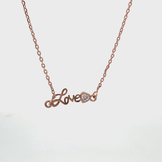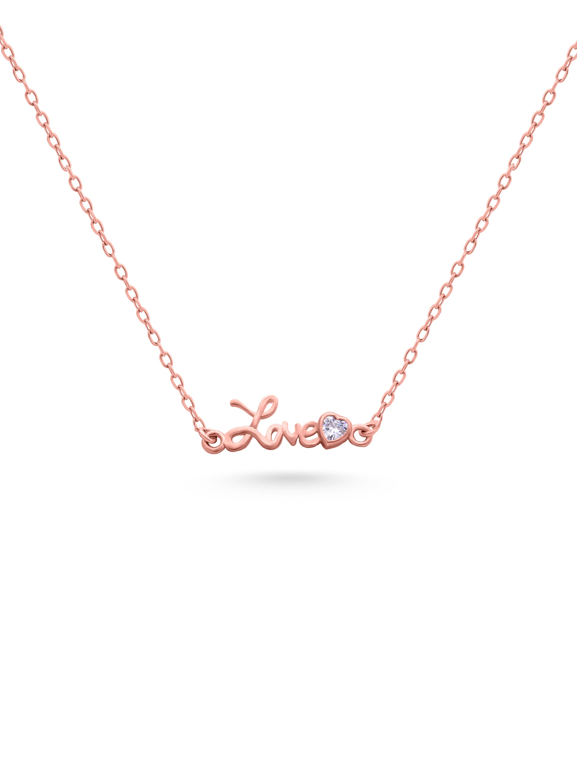 92.5 Sterling Silver Dainty Love Necklace in Rose Gold