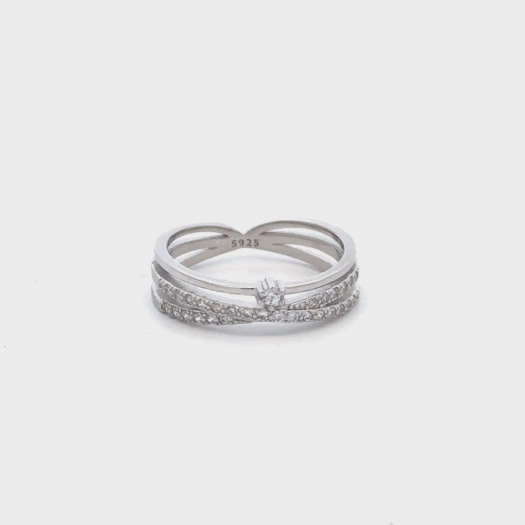 Experience indulgent elegance with our exquisite silver ring, adorned with Swarovski zircon and a dazzling solitaire. Its sophisticated design features three layers on the side, where lines of zircon intersect in captivating symmetry. The addition of a delicate solitaire on the third line elevates the ring's allure, making it a timeless and chic accessory for any occasion.