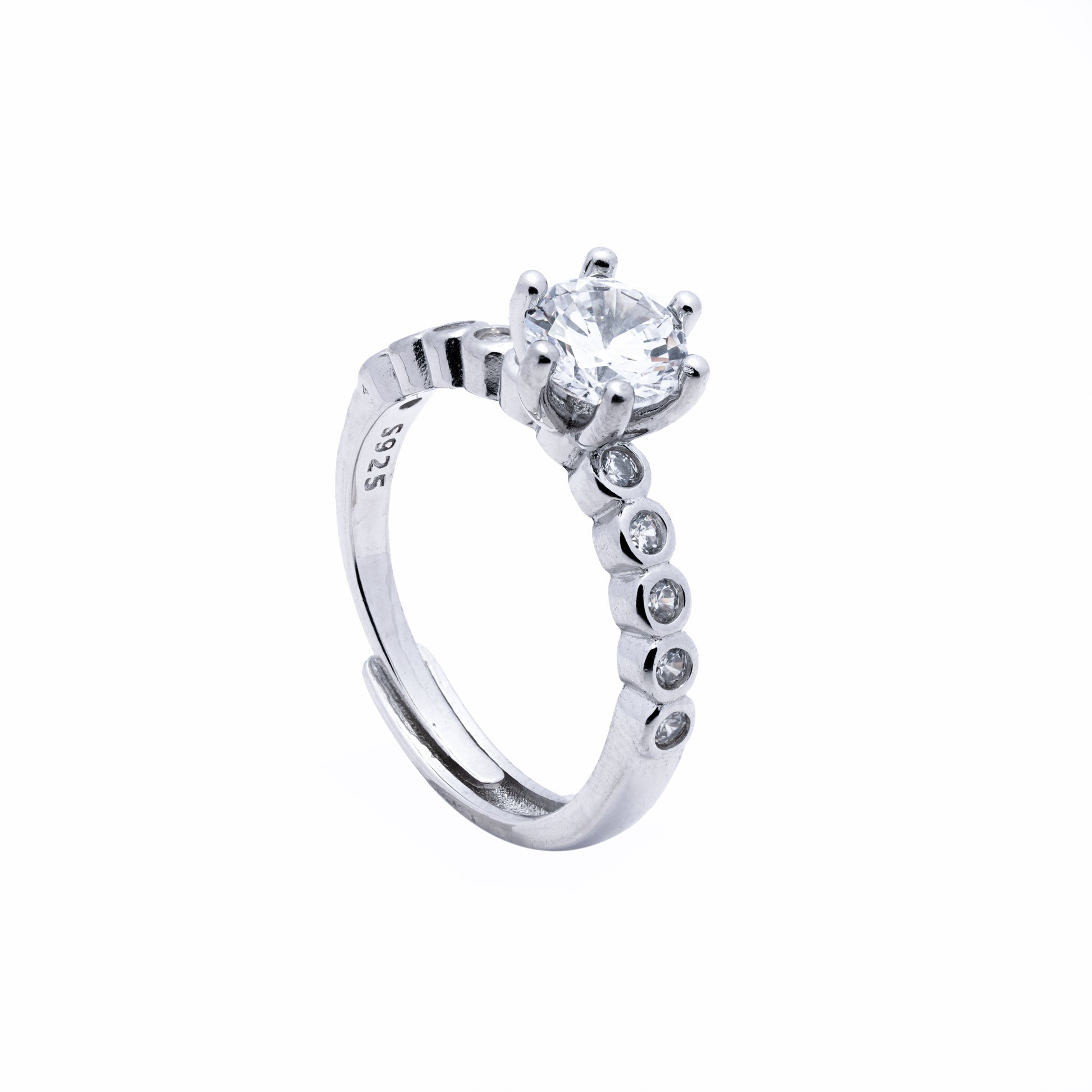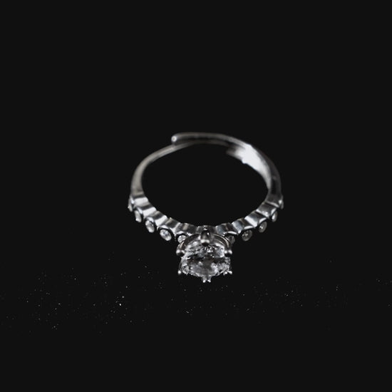 Introducing our high quality 1 Carat zircon solitaire rings, a dazzling center piece to captivate. At its heart this ring features a breathtaking 1 carat Zircon solitaire that sparkles with brilliance. Surrounding the central stones, the band is adorned with small sparkly zircon stones, meticulously set to enhance the overall radiance and elegance of the piece.
